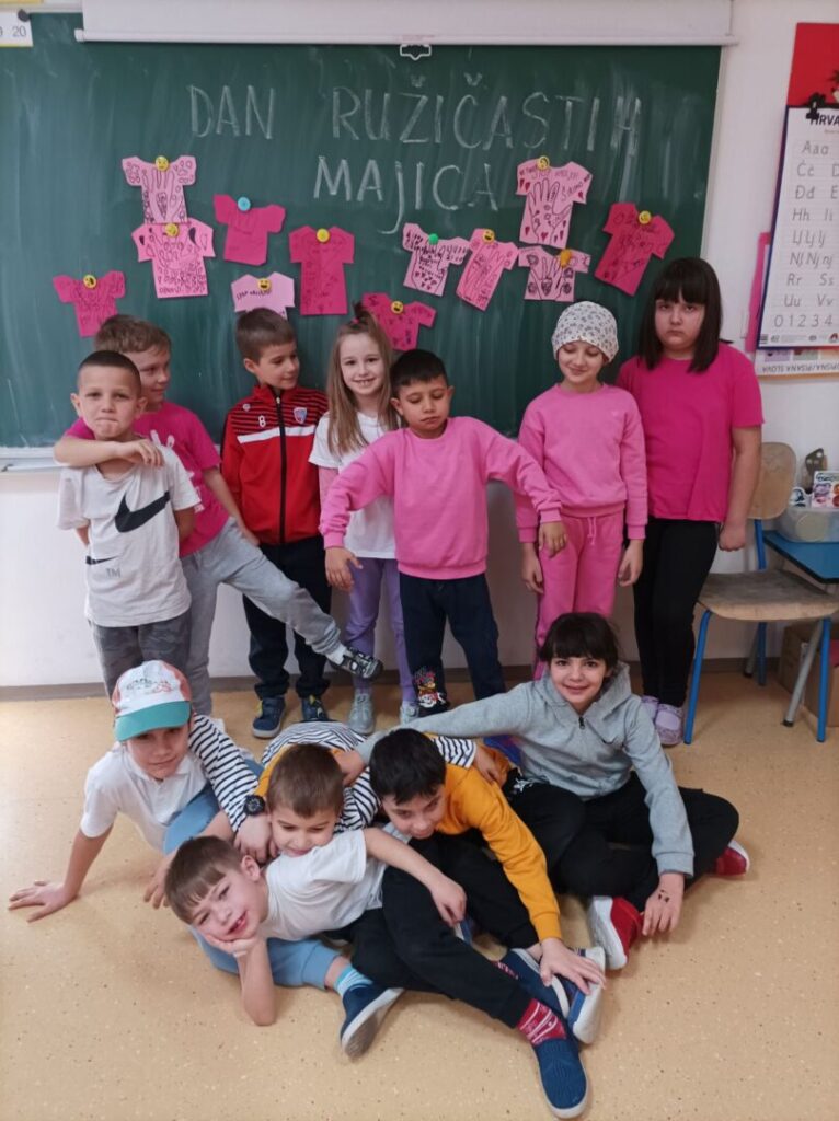 Danas smo obilježili Dan ružičastih majica. Dan ružičastih majica obilježava nacionalni dan borbe protiv vršnjačkog nasilja i obilježava se svake godine zadnje srijede u veljači. Učenici nose ružičaste majice radi podizanja svijesti o zlostavljanju i nasilju, posebice u školama.