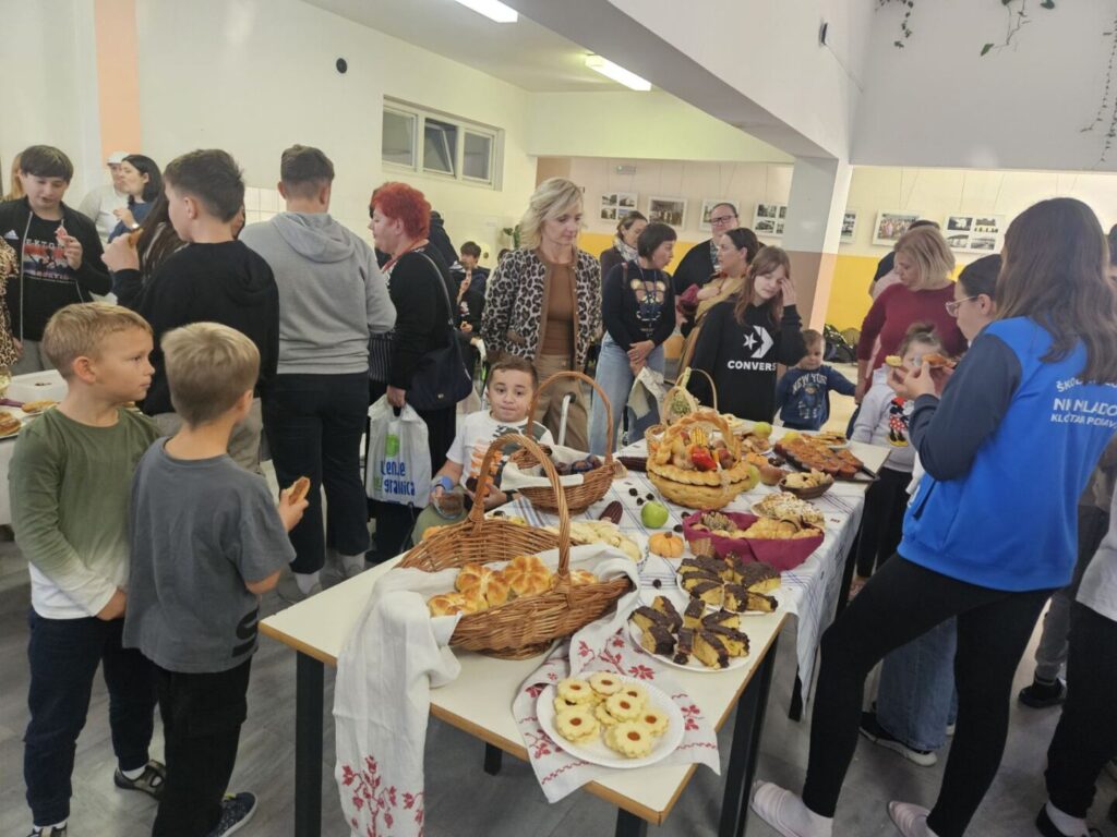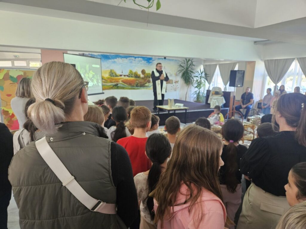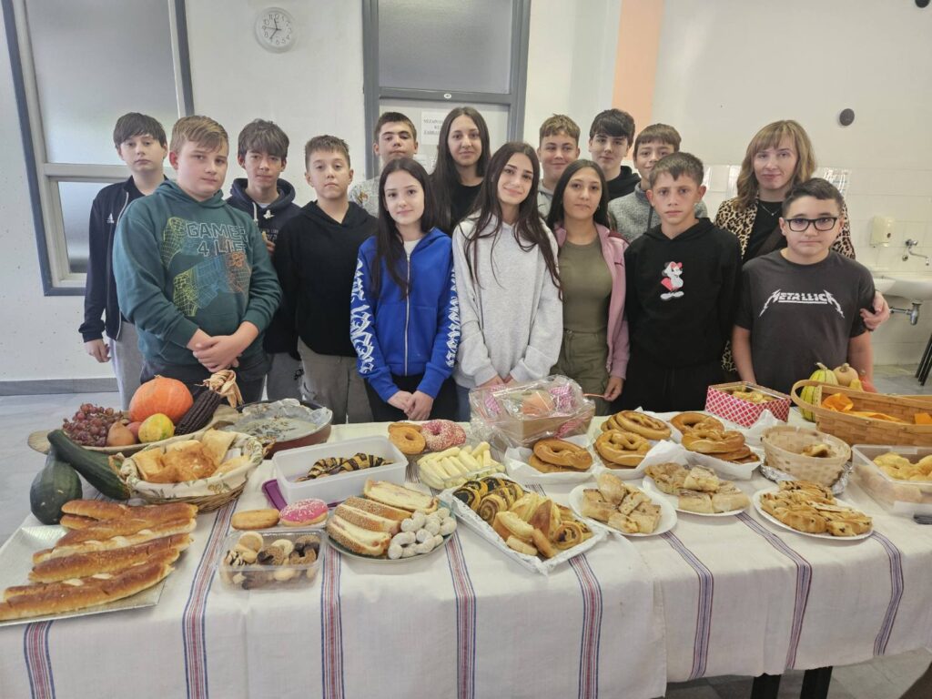 Učenici od 1. do 8. razreda sa svojim su razrednicama s puno truda i mašte ukrasili stolove jesenskim plodovima, kruhom, pecivima i kolačima koje su pripremili zajedno sa svojim mamama i bakama.