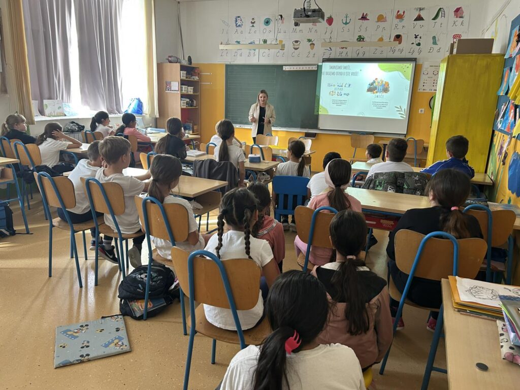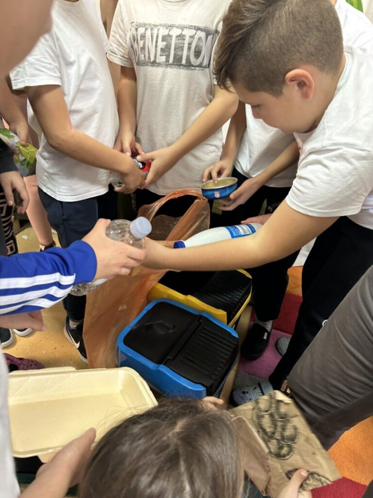 Kroz razgovor i primjere iz svakodnevnog života učenici su saznali što je otpad, kako ga pravilno razvrstavati te koliko je recikliranje važno za očuvanje našeg planeta. Nakon predavanja uslijedila je radionica u skupinama – svaka skupina dobila je vreću s različitim vrstama otpada te kante za miješani komunalni otpad, plastiku i papir. Zadatak je bio jednostavan, ali vrlo poučan: pravilno razvrstati otpad! Uz dogovor, suradnju i puno smijeha, učenici su uspješno obavili zadatak.
