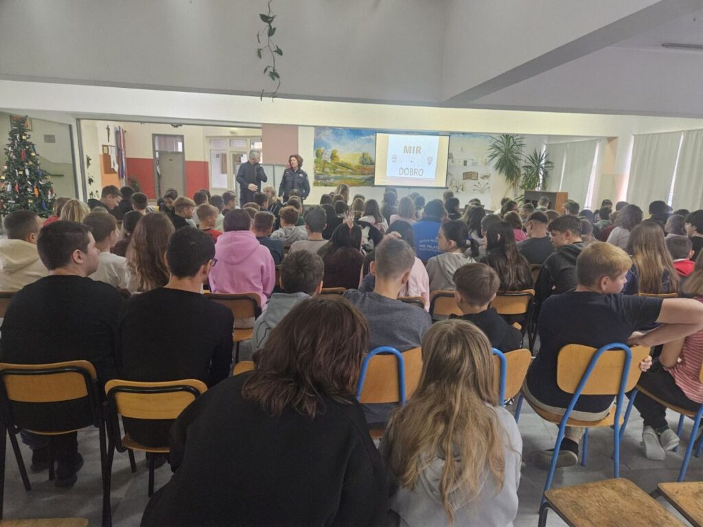 Jučer je u našoj školi za učenike od 4. do 8. razreda održano predavanje PU Koprivničko-križevačke o upotrebi pirotehnike. Akcija „Mir i dobro“ provodi se u školama s ciljem upoznavanja učenika o opasnostima pirotehnike, zakonskim i zdravstvenim posljedicama. Darujmo sigurnost jedni drugima suzdržavajuće se od pirotehničkih sredstava.
