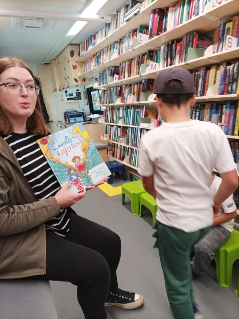Učenici 1. a razreda matične škole posjetili pokretnu knjižnicu koja svaki treći ponedjeljak staje ispred naše škole. Nisu mogli ni zamisliti da se u autobusu krije čaroban svijet knjiga. S oduševljenjem su pratili priču koju im je pročitala knjižničarka Valentina. Riječ je o slikovnici Čarolija knjižnice, koja je uistinu čarobna. Upoznali su se s bibliobusom i posudili slikovnice koje će čitati kod kuće.