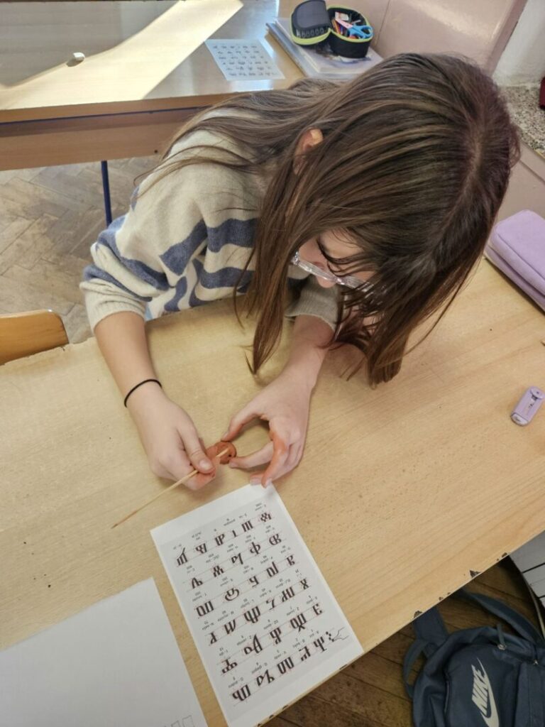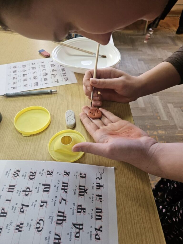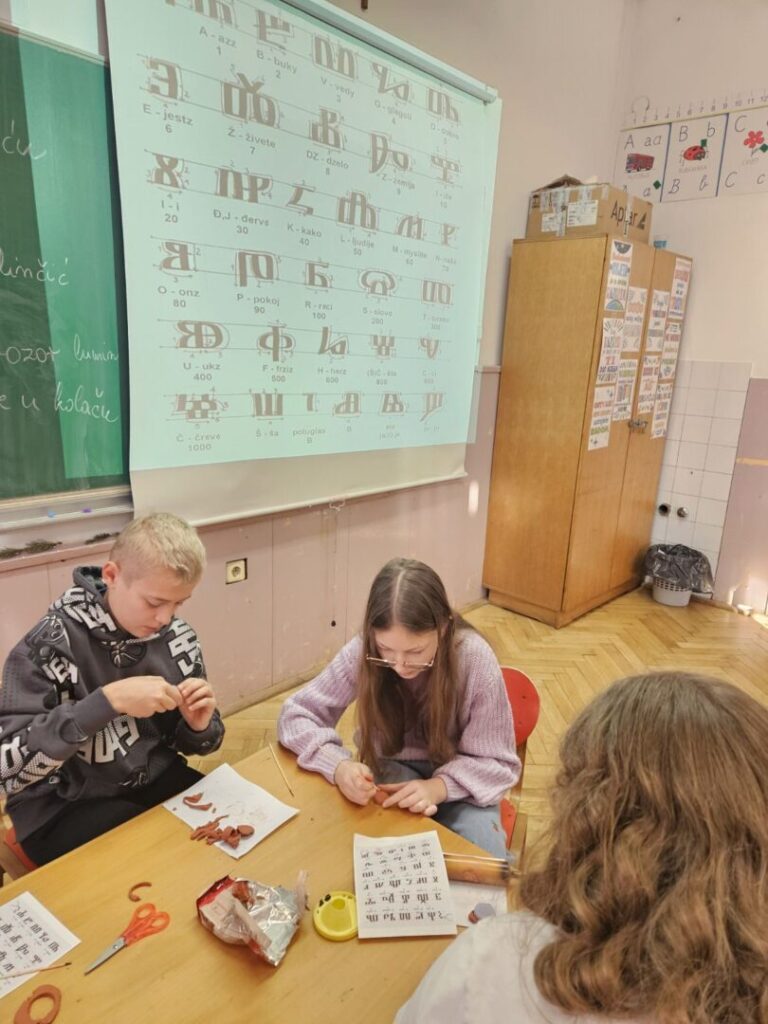 Učenici su naučili važan dio povijesti vezan uz razvoj pismenosti. Praktičnim zadatkom su usvojili pisanje glagoljice te izradili privjesak koji će im ostati uspomena na prvo slavensko pismo – glagoljicu.