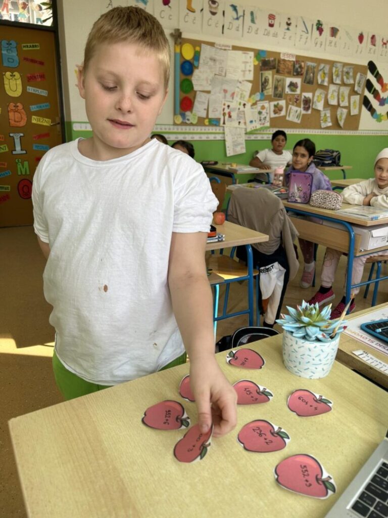 U petak, 20. listopada, učenici 3. b razreda obilježili su Svjetski dan jabuka provodeći integrirani dan posvećen ovoj omiljenoj jesenskoj voćki. Kroz različite nastavne predmete učenici su istraživali, učili i uživali u zanimljivim i poučnim aktivnostima povezanima s jabukom. Na satu Hrvatskog jezika čitali su duhovit i poučan tekst „Muka po jabuci“ autorice Ksenije Grozdanić, razgovarali o njegovoj poruci te izražavali vlastite doživljaje i iskustva. Na Matematici su zbrajanjem „matematičkih jabuka“ otkrili poznatu izreku: „Jedna jabuka na dan liječnik iz kuće van.“ Rješavanjem zadataka sastavljali su i jabučne puzzle, koje su na kraju tvorile slike zelene, žute i crvene jabuke. Na satu Prirode i društva učenici su jabuku istraživali svim osjetilima – dodirom, mirisom i okusom. Prisjetili su se dijelova jabuke, razgovarali o uvjetima potrebnim za njezin rast te o proizvodima koje možemo dobiti od jabuka. Dan su završili na satu Tjelesne i zdravstvene kulture, gdje su kroz igre „Jabuke u košare“, „Ubaci jabuku“ i „Rječita jabuka“ pokazali spretnost, suradnju i vedar natjecateljski duh.